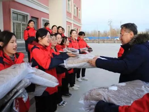 傍晚,刘革生书记一行前往援疆师生驻地,为支教师生送来防寒服、围巾、御寒帽等来自母校的“温暖”,察看了周边配套设施,详细了解大家的生活条件和环境,从衣食住行等各方面关心、关爱支教师生。晚上,刘革生书记一行和师生们在驻地食堂共进晚餐,为过生日的同学庆生,亲身感受支教团的日常生活情况,驻地充满了温馨的气氛。刘革生书记叮嘱支教团师生要格外珍惜今后一个半月的支教时光,继续团结协作、亲如一家,为自己的青春留下一段美好而难忘的支教记忆。