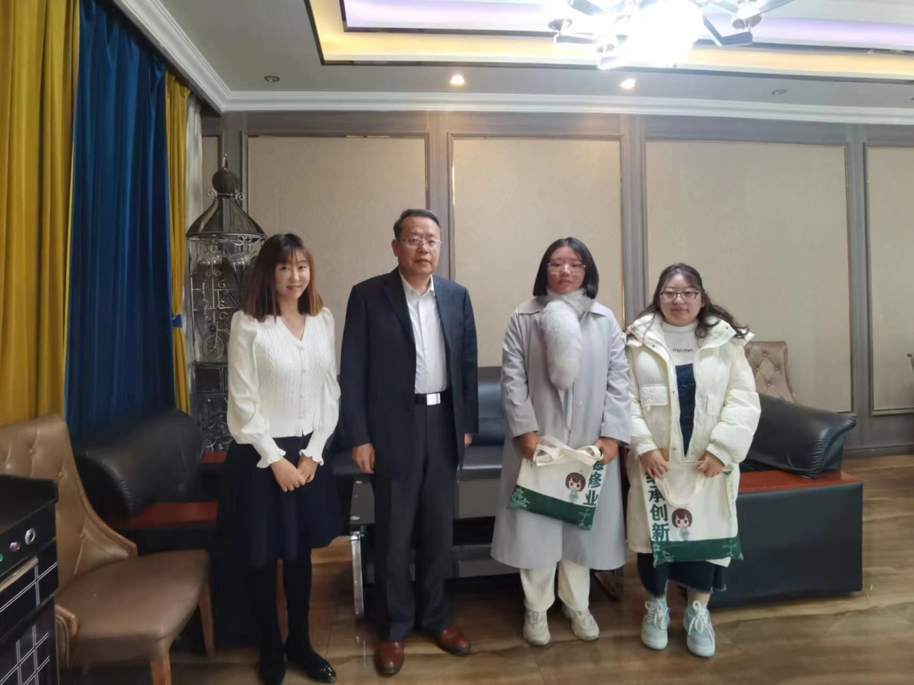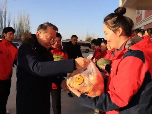 11月25日晨,刘革生书记一行再次来到支教团驻地看望支教团成员,并为师生们带来时令水果和来自天津的家乡味道---十八街麻花,关心询问师生的饮食、生活情况,并叮嘱大家要注重膳食营养、保重身体,期待32名师生支教期满后顺利返津。