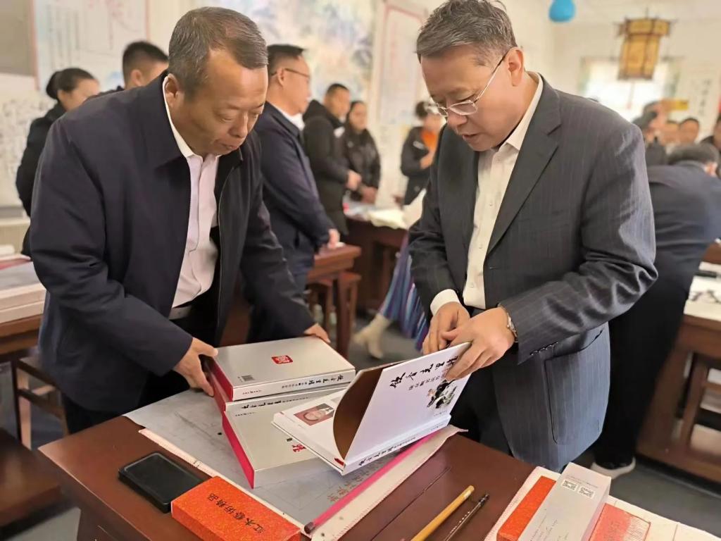 随后,刘革生书记一行来到于田县第三高级中学走访交流,了解学校办学历程和教育教学特色,在“书画苑”里,刘革生书记与师生亲切交流,学校办公室曹永兴主任现场挥毫泼墨写下“爱我中华”赠送给三中,一字一世界,一笔一乾坤,充分展示出书法艺术的独特魅力,老师和同学们拿到作品后爱不释手。现场同学表示:“这次交流使我更加深刻认识到练习书法的重要性,今后我一定要努力学习,为传承中华优秀传统文化贡献力量。”