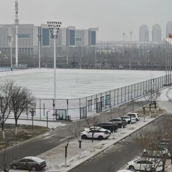 操场的跑道线隐入雪毯之下