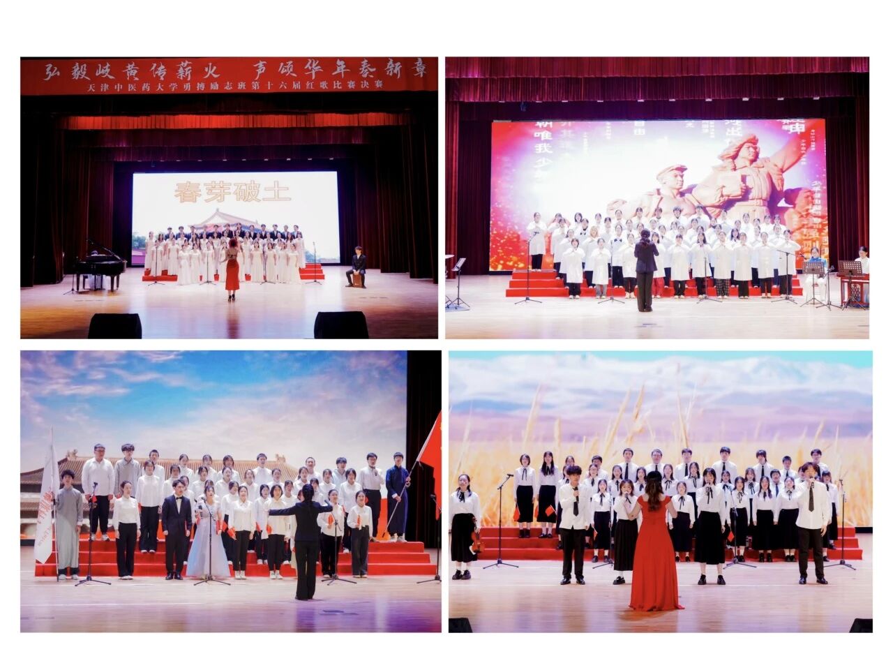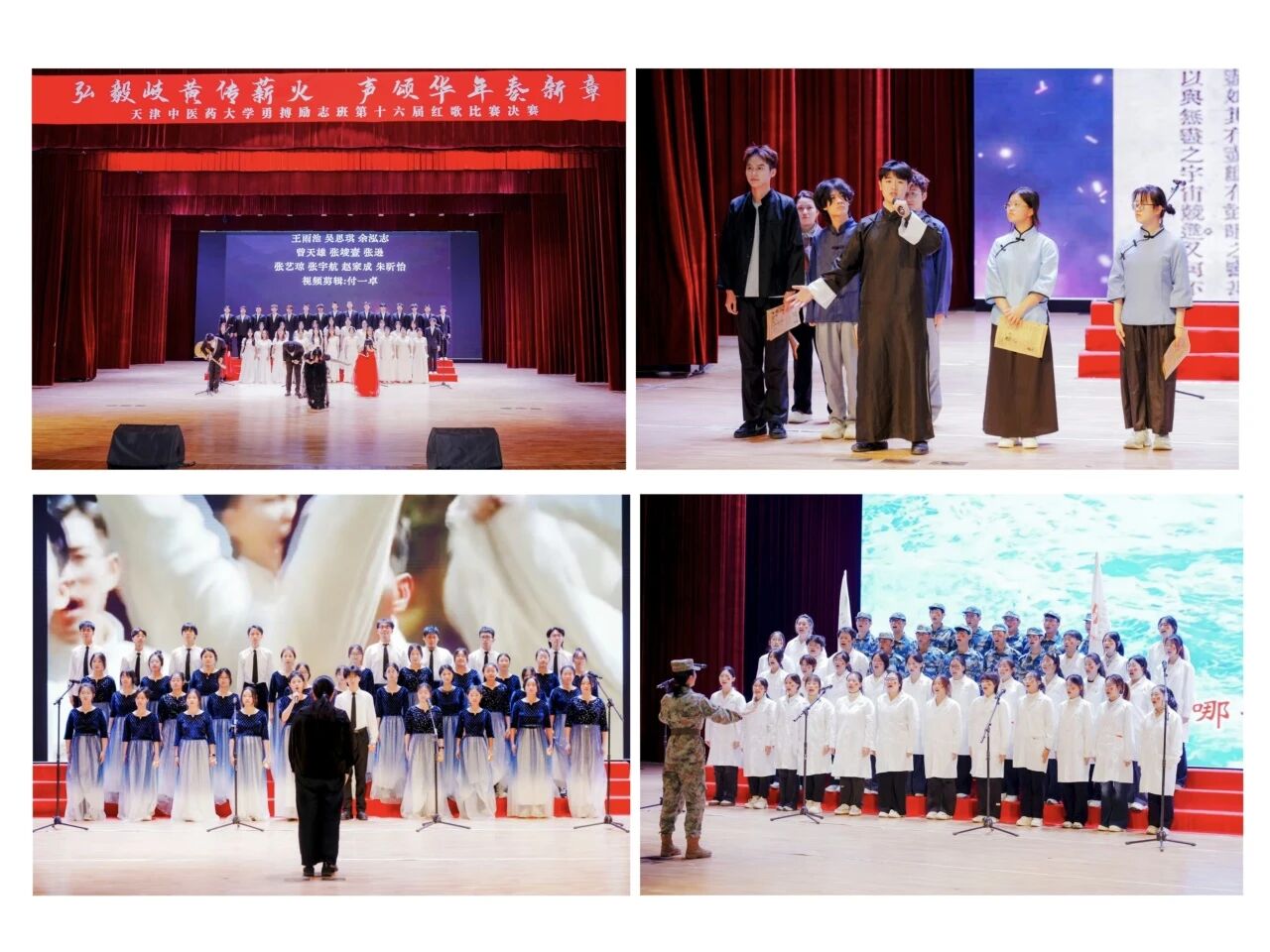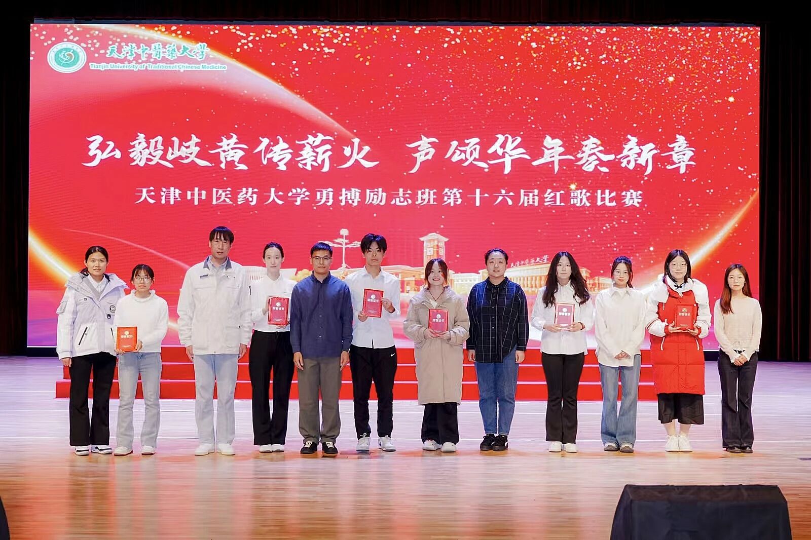 为回溯红色历史、赓续红色基因、厚植爱国情怀,11月18日,天津中医药大学在大学生活动中心举办了“弘毅岐黄传薪火,声颂华年奏乐章”第十六届勇搏励志班红歌比赛,青春锋芒汇聚成奋进的星光,深情红歌颂扬着不变的信仰。十六支参赛队伍以饱满的姿态为现场观众呈现了一场视觉盛宴。学校相关部门和各二学院党委负责同志,学生代表现场观赛。