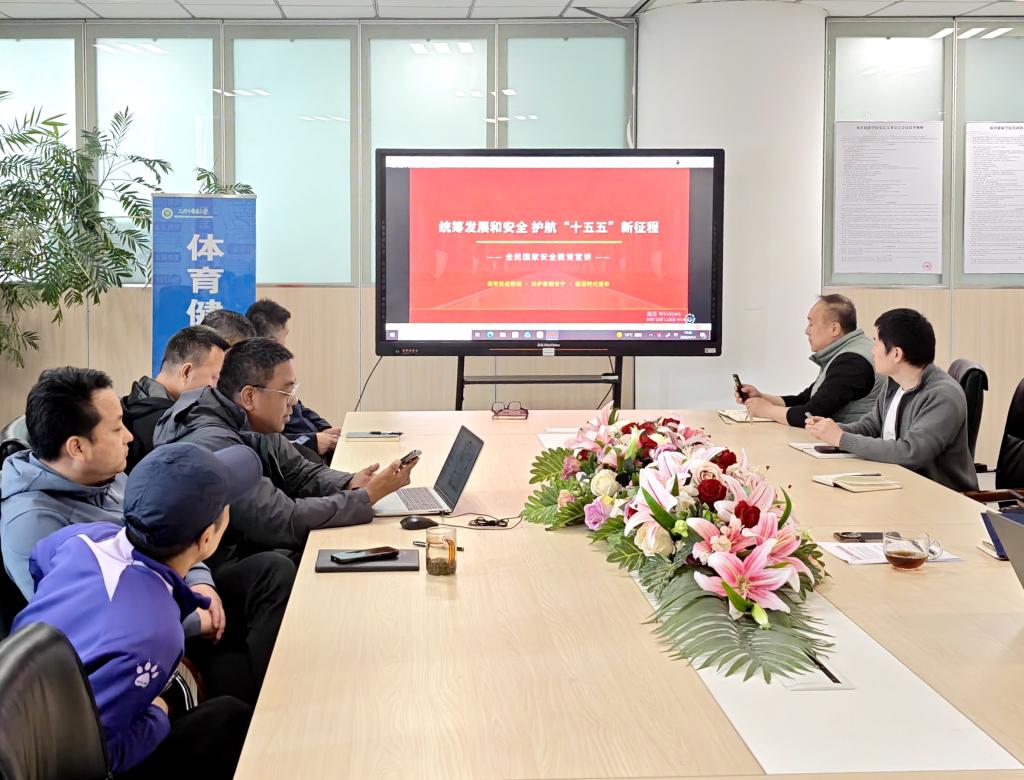 4月14日,体育健康学院组织开展“统筹发展和安全 护航‘十五五’新征程”主题国家安全宣讲会。体育健康学院党总支书记李超围绕总体国家安全观的核心要义、“十五五”时期国家安全战略部署等内容,结合高校育人实际,展开系统讲解。宣讲内容涵盖政治安全、国土安全、文化安全、网络安全等领域,重点结合学院实际,阐述了与师生密切相关的意识形态安全、校园安全、体育赛事安全等,强调作为高校教师不仅要做好专业教学、科研与服务工作,更要时刻紧绷国家安全之弦,严守安全底线。