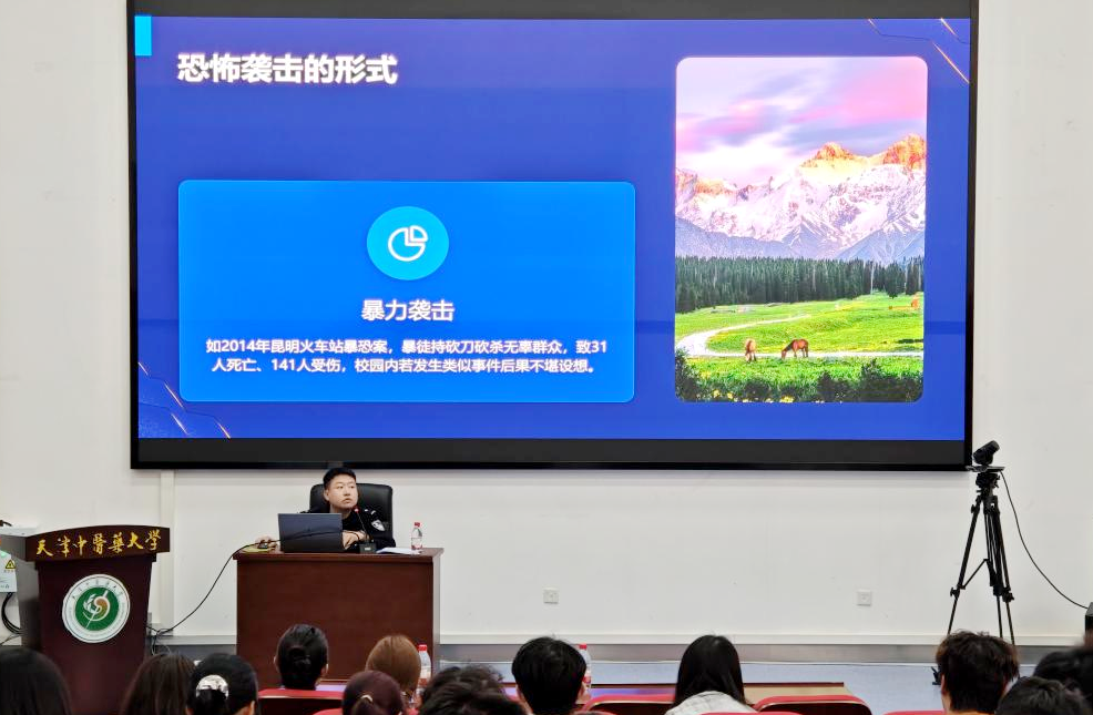 4月14日,党委安全工作部特邀华康派出所罗扬警官,在国际学院一楼报告厅为师生作国家安全主题宣讲。宣讲中,罗警官围绕“总体国家安全观下的校园安全”这一主线,结合真实案例,深入浅出地讲解了校园反恐法制知识、常见电信诈骗手法识别、财物失窃与网络言论注意事项等内容。他特别提醒同学们,不随意点击陌生链接、不传播暴恐音视频、遵守互联网使用规范,都是维护国家安全的具体行动。他呼吁大家从身边小事做起,做自身安全的第一责任人,做国家安全的自觉守护者。整场讲座内容贴近生活、案例生动、互动频繁,现场气氛热烈。师生们纷纷表示,通过此次宣讲,对国家安全有了更全面、更立体的认识,也掌握了实用的自我防护技能。