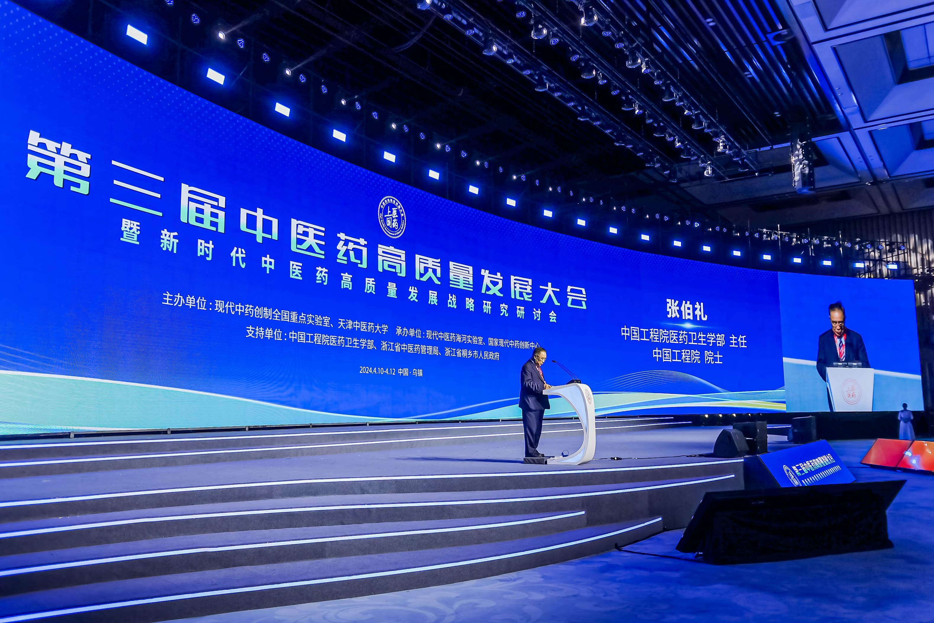 4月10-12日,第三届中医药高质量发展大会暨新时代中医药高质量发展战略研究研讨会在浙江乌镇互联网国际会展中心召开。大会主题为“发展新质生产力,推进高质量发展”。此次会议由现代中药创制全国重点实验室、天津中医药大学主办,现代中医药海河实验室、国家现代中药创新中心承办。设主论坛和6场平行论坛,同时召开了中国工程院战略研究与咨询项目“新时代中医药高质量发展研究”研讨会。从重大疾病防治、循证医学、交叉创新、中药创新研发与上市后研究、产业协同等方面进行深入对话,促进政产学研用交流互动,发挥学术引领和创新驱动的作用。13名院士,200余名中西医药知名专家和近2000名代表参加会议。