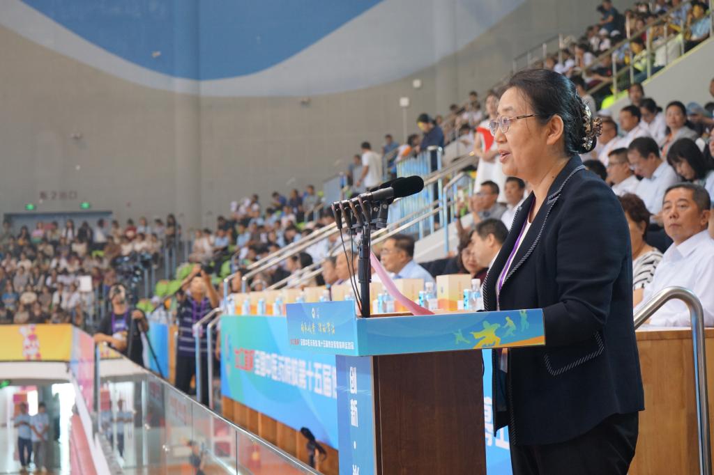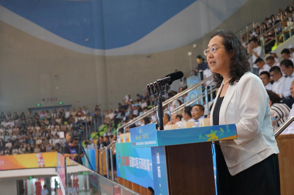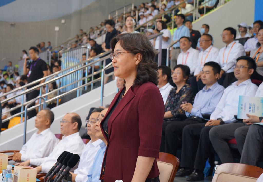 北京中医药大学党委书记王瑶琪代表兄弟院校致辞,她表示,相信大赛的举办必将在广大青年学子中间点燃运动激情,播撒体育火种,传承文化精华,有力促进全民健身活动广泛开展,带动体育健康产业和中医药事业高质量发展。