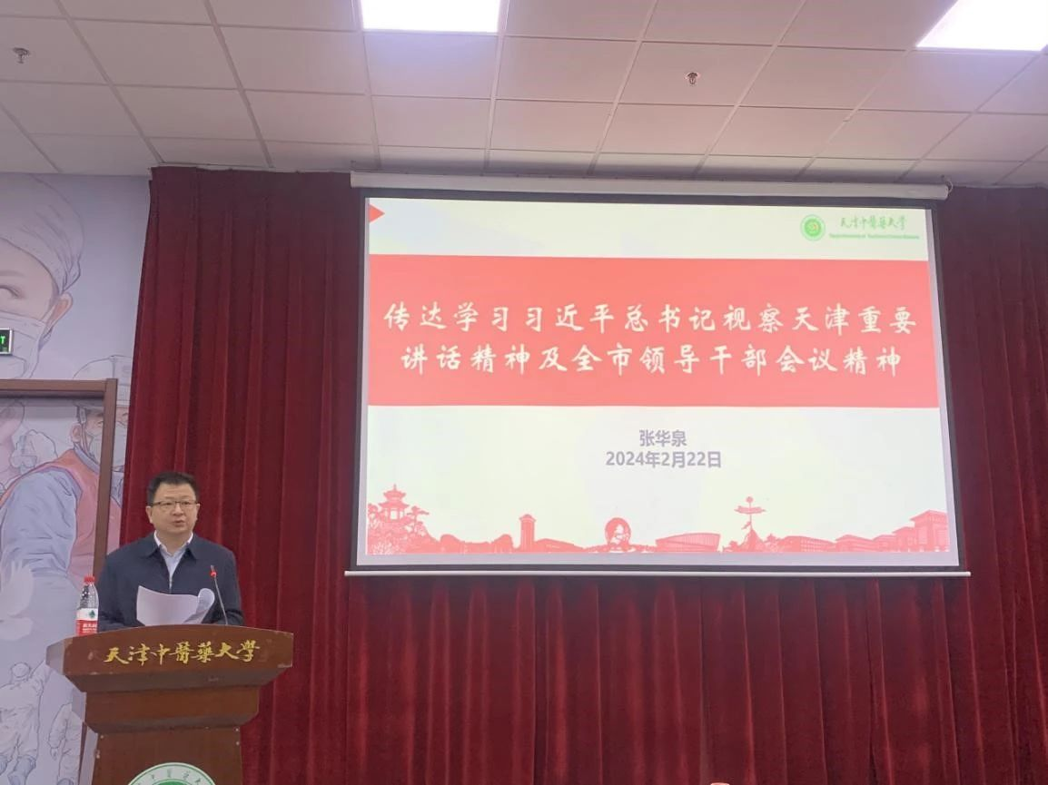 会上,校党委副书记张华泉传达习近平总书记视察天津重要讲话精神、市委常委会扩大会议和全市领导干部会议精神。他指出,习近平总书记的重要讲话,高瞻远瞩、思想深邃、内涵丰富,深刻阐述了新征程上天津发展的全局性、根本性、战略性问题,进一步明确了天津工作的战略指向、目标任务和重大举措,具有很强的政治性、思想性、针对性、指导性,为天津发展指明了前进方向,提供了科学指引。为进一步推进习近平总书记重要讲话精神的贯彻落实,他提出三点希望:一是学深悟透,理论学习求深度。作为思想政治工作者,要在学习领会习近平总书记重要讲话精神上学习更多、思考更深、领悟更透。要把学习贯彻习近平总书记重要讲话精神与深入学习贯彻习近平新时代中国特色社会主义思想和党的二十大精神、与贯彻落实习近平总书记对天津工作的一系列重要指示要求结合起来,真正做到心领神会、融会贯通,进一步强化做到“两个维护”的政治自觉、战略自觉、行动自觉。二是讲准讲精,教育宣传见热度。要将学习贯彻习近平总书记视察天津重要讲话精神作为学期初学生思想政治教育的首要任务,组织召开班级会、年级会、党团支部会等加强习近平总书记视察天津重要讲话精神的宣传教育。要发挥网络宣传阵地作用,以学生喜闻乐见的形式开展宣传,将学习宣传贯彻习近平总书记视察天津重要讲话精神同时代新人铸魂工程、“我和我求学城市”活动紧密结合,在广大学生中形成学习贯彻的热潮。要开展以习近平总书记视察天津重要讲话精神为主题的学生思政工作理论和实践创新。三是落地见效,推进发展有力度。要进一步提升人才培养质量,强化专业能力教育,鼓励引导更多的学生参与科研创新之中,为社会输送更多更优质的中医药人才。要认真结合“四个善作善成”的工作要求,强化思想政治教育改革创新,抓住当前大学生思想生活特点更有的放矢地开展工作,创新具有天中特色的思想政治工作品牌。要发挥好中医药特色优势,深化中华优秀传统文化的浸润作用,依托大中小思政一体化扩大中医药等中华优秀传统文化影响力,着力在推动文化传承发展上善作善成。要积极推进学生日常管理的中国式现代化,进一步加强“一站式”学生社区建设,筑牢织密校园安全防线。将习近平总书记视察天津重要讲话精神与实际工作紧密结合,指导各项工作落到实处。